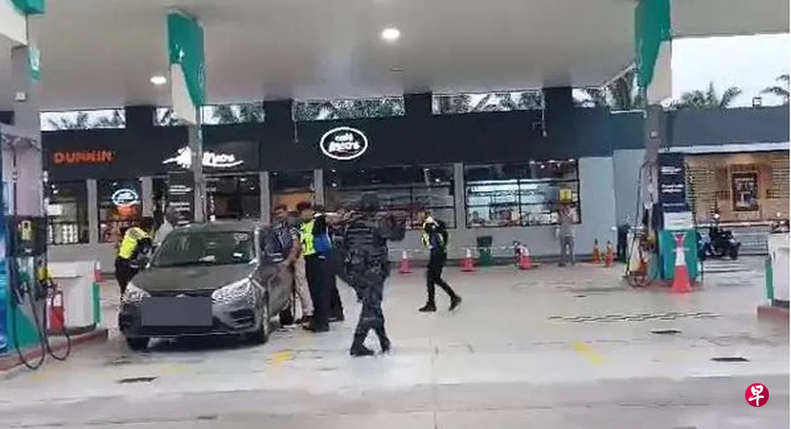 《中国报》引述互联网中流传的其中一则视频画面说,数名军警人员手持枪械对着停泊在油站的一辆宝腾赛佳,并且高喊:“Down(伏下)”,现场情势紧张。