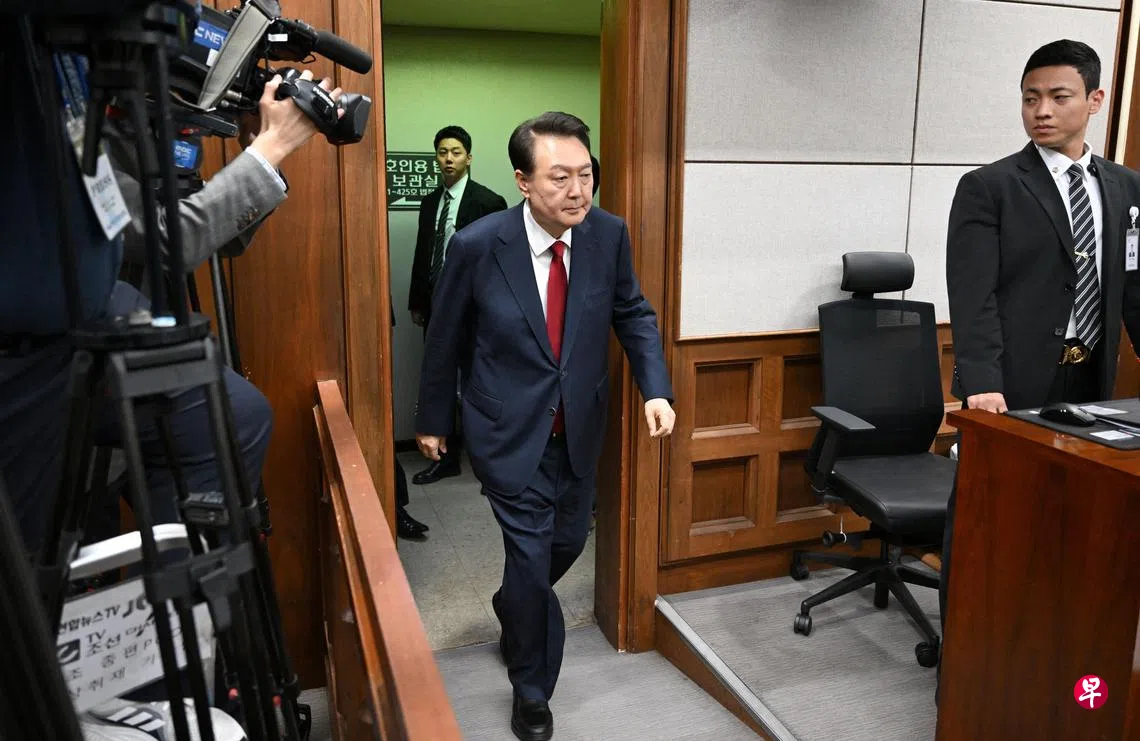 被弹劾下台的韩国前总统尹锡悦星期一(4月21日)再次出席内乱案庭审,他坐在被告席时首次允许媒体拍摄。
