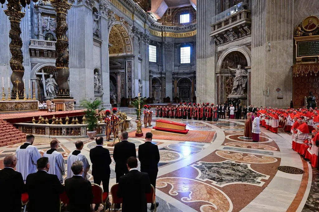 方济各的灵柩周三在庄严的仪式中从圣玛尔塔居所移往圣伯多禄大殿,供人们瞻仰遗容三天,直至周六葬礼举行前夕。