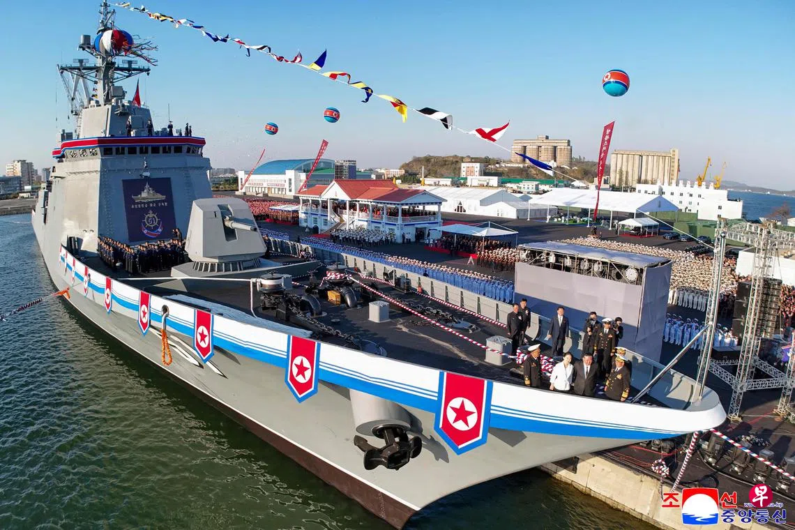 “崔贤”号下水仪式于4月25日举行。从朝中社发布的图片可见,其配备巡航导弹、弹道导弹发射台等各种导弹发射装置,被评价为“朝鲜版宙斯盾驱逐舰”。