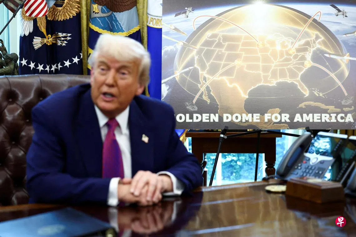 美国总统特朗普5月20日宣布,他已选定“金穹”(Golden Dome)导弹防御系统的设计方案,并任命了这项雄心勃勃、耗资1750亿美元(2257.15亿新元)的计划的负责人。