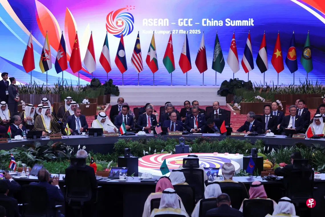 他指出,亚细安2023年的生产总值达3.8万亿美元(约4.9万亿新元),是全球第五大经济体。同年,亚细安与海合会的贸易额为1307亿美元,投资额达3亿9020万美元。中国则是亚细安最大的贸易伙伴,双边贸易额达6967亿美元,直接投资达173亿美元。