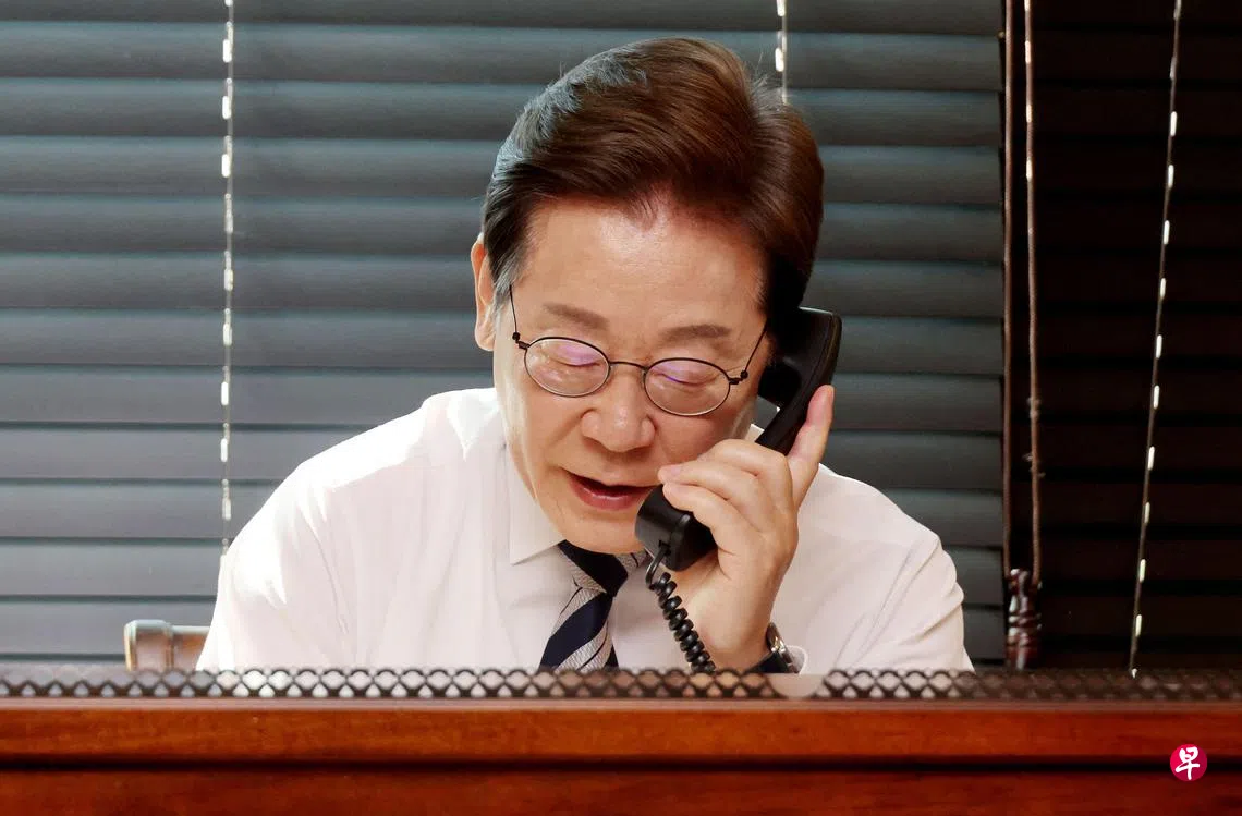 韩国新总统李在明星期三(6月4日)开始履职,早上8时零7分左右(新加坡时间早上7时零7分)就在家中与联合参谋本部议长金明秀通电话,听取军队统帅权交接汇报。