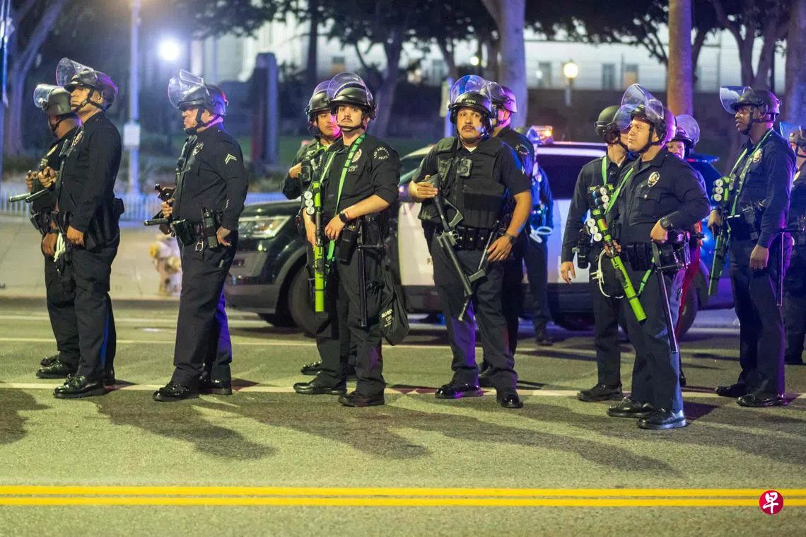 美国海关和移民执法局(ICE)上星期五(6日)在加利福尼亚州洛杉矶多个地点突击搜捕非法移民,逮捕数十人,引发数日示威。抗议者频频与执法人员发生冲突,局势愈发紧张,市中心部分区域开始实施宵禁。