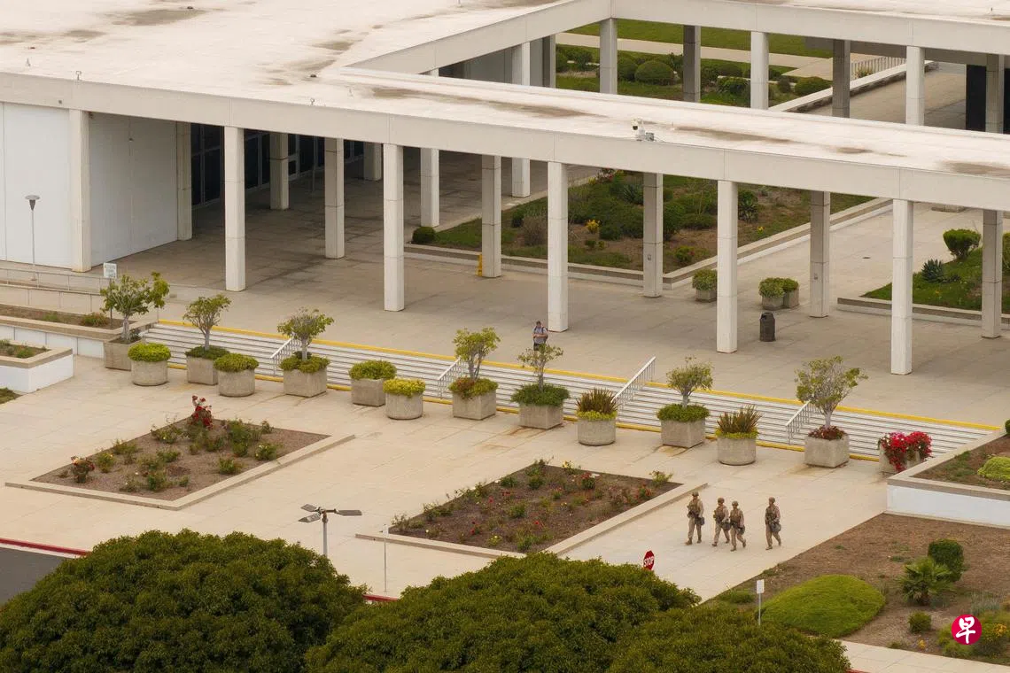 新华社记者当天看到,在洛杉矶联邦机构设施外,全副武装的海军陆战队士兵已开始执行警戒守卫任务。