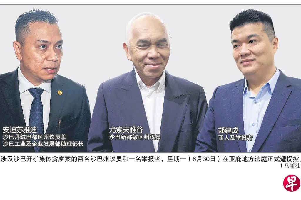 沙巴州议员集体贪腐案的三名涉案者,星期一(6月30日)在沙巴亚庇地方法庭面控。