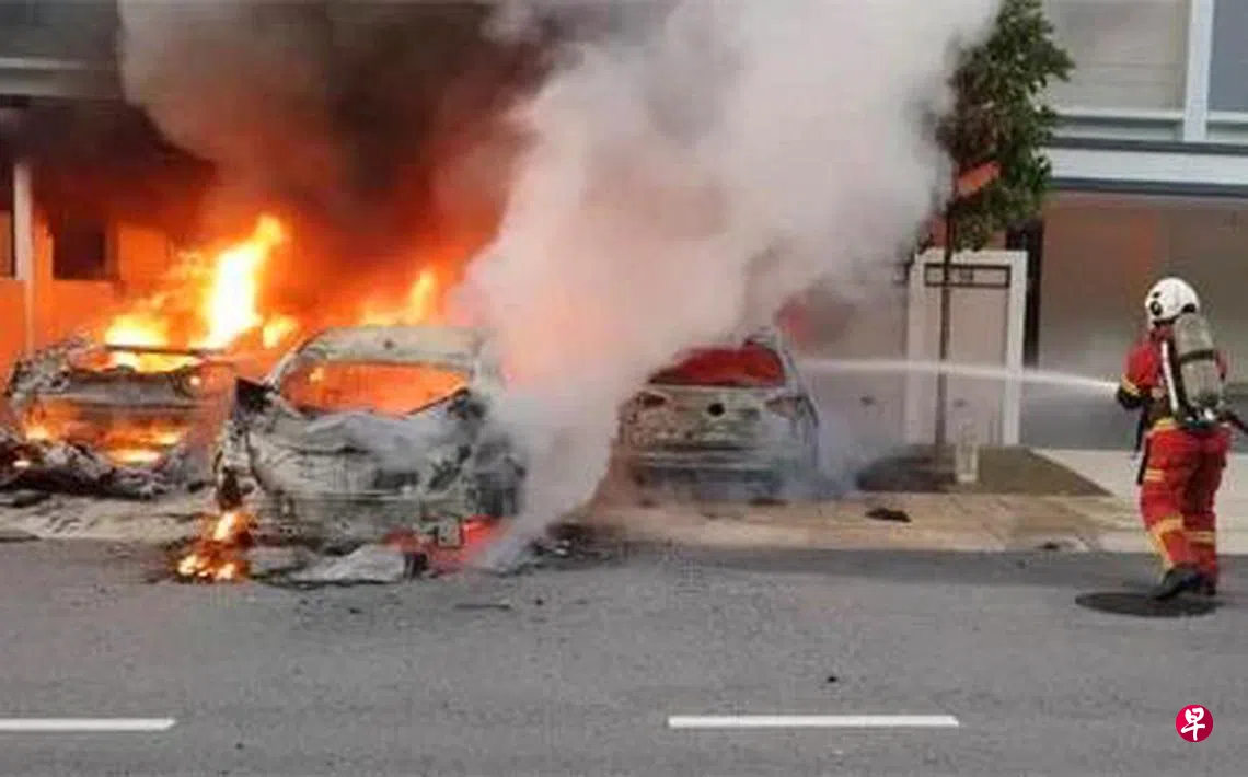 烧车案发生于星期二(1日)清晨6时44分,地点在雪州直落坡(Telok Panglima Garang)丽阳丰逸城(Tropicana Aman)的两间双层排屋外。四名歹徒上门烧毁五辆停泊在屋外的豪华轿车,两间双层排屋也遭殃,所幸没有殃及人员伤亡。