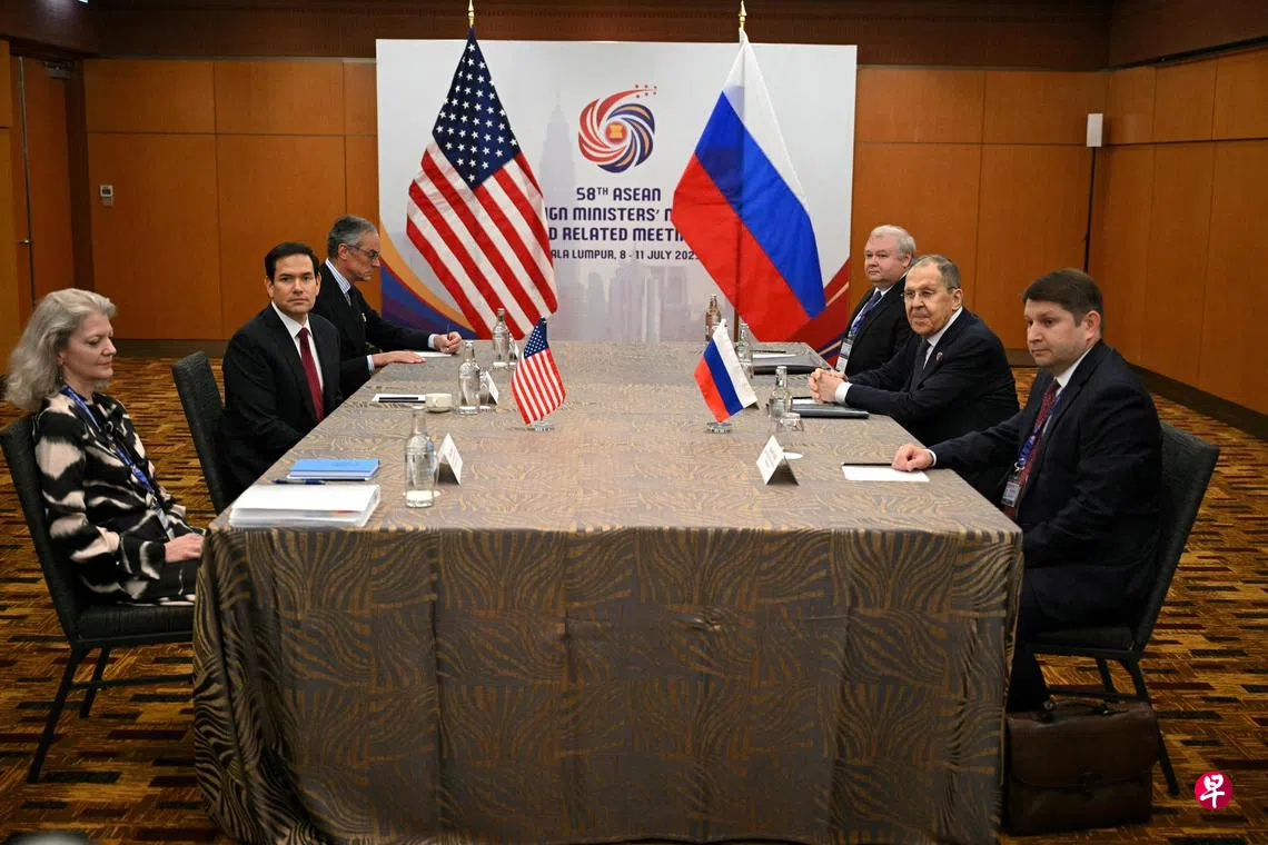 路透社报道,鲁比奥与拉夫罗夫星期四(7月10日)在吉隆坡参加亚细安外长会议期间,举行场边会晤。这是两人今年以来第二次面对面会晤,上一次是2月在沙特阿拉伯利雅得,两人分别率领本国代表团,讨论改善俄美关系以及结束乌克兰战争的计划。