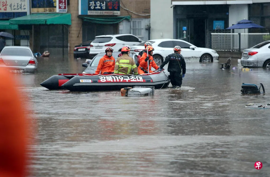 韩国连续第三天遭暴雨肆虐,至今有超过5000人被迫疏散,洪水已造成四人死亡、一人失踪。