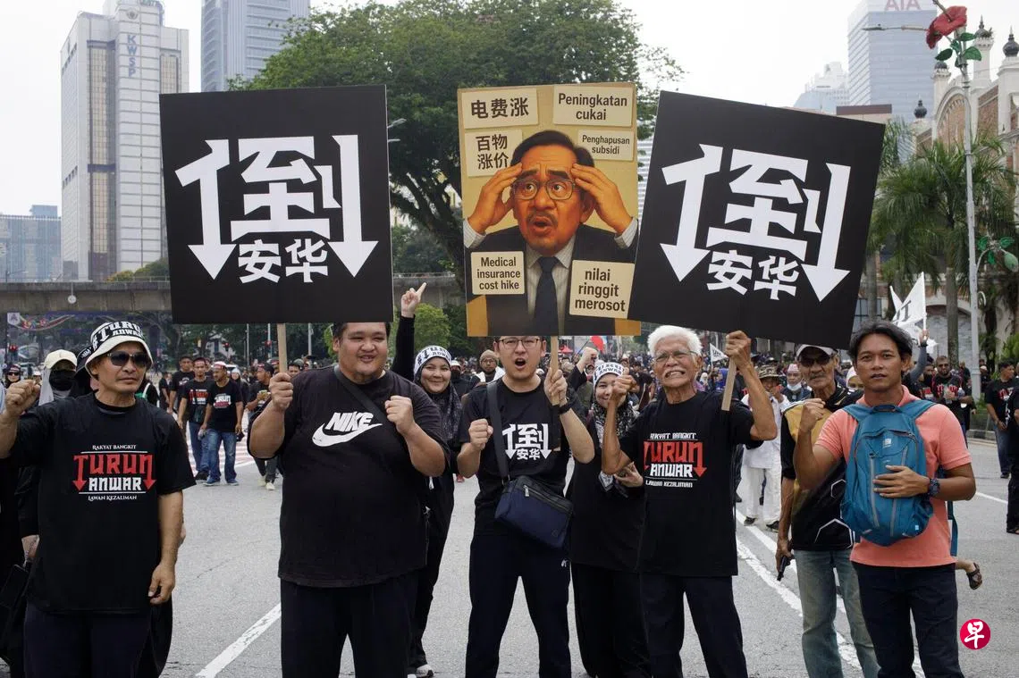 当天现身集会现场并发表演讲的国盟主席慕尤丁则说,生活成本高涨让许多马国人苦不堪言,安华应引咎辞职。
