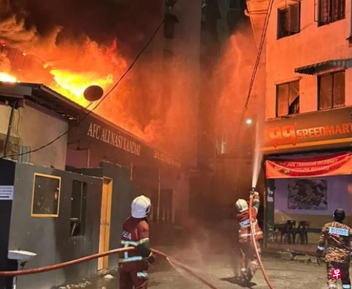 网传画面显示,火势猛烈,烈焰冲天,整排店屋陷入火海,木板、物品接连崩塌燃烧,现场宛如炼狱;浓烟不断往夜空窜升,场面惊心动魄。