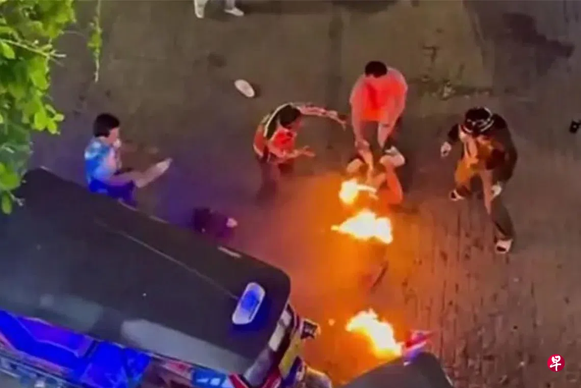 《星报》报道,这起事件发生在星期四(8月7日)晚上10时左右,据报道,施袭者是一名前拳击手,他从后面靠近两人,把稀释剂(thinners)倒在两人身上后点火。