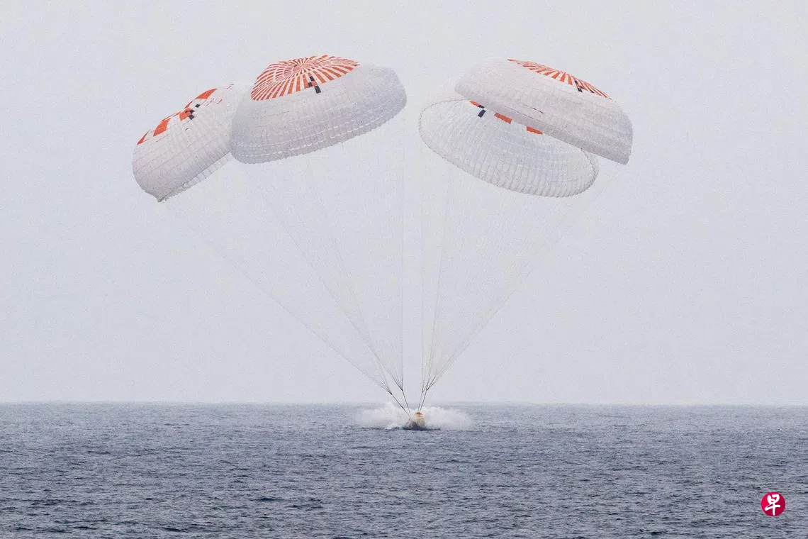 美国太空探索技术公司(SpaceX)“龙”飞船星期六(8月9日)顺利搭载四名宇航员返回地球,并在加利福尼亚州近海安全溅落。