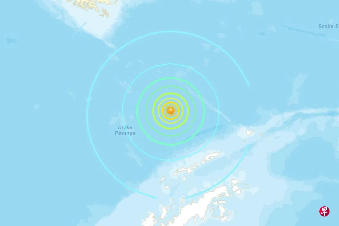 据美国地质调查局地震信息网消息,位于南美洲与南极洲之间的德雷克海峡(Drake Passage)发生7.5级地震,震源深度10.8公里。