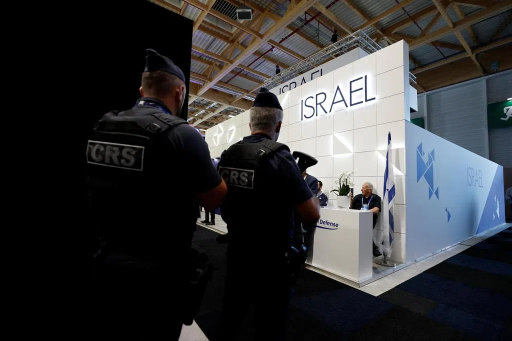 三个月前在巴黎航展上也发生了类似事件。当时,由于以色列国防企业拒绝撤下展品中的攻击性武器,法国用黑色隔板遮住了相关展位,引发以色列的强烈抗议。