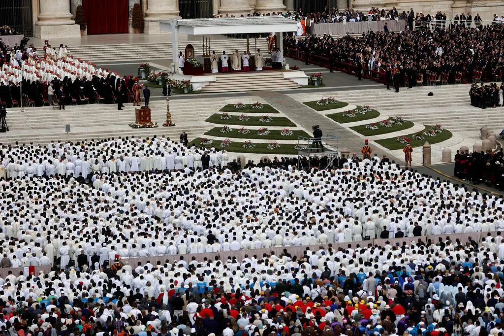 这是良十四世首次主持封圣大点。此次大典原定于4月举行,但因上一任教宗方济各逝世而推迟。