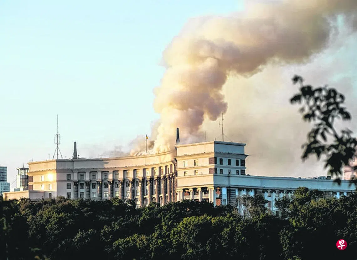 俄罗斯9月6日晚至7日凌晨对乌克兰发动俄乌爆发战争以来最大规模的一次导弹和无人机袭击。位于基辅市中心的内阁大楼也被击中,大楼屋顶冒起滚滚浓烟。