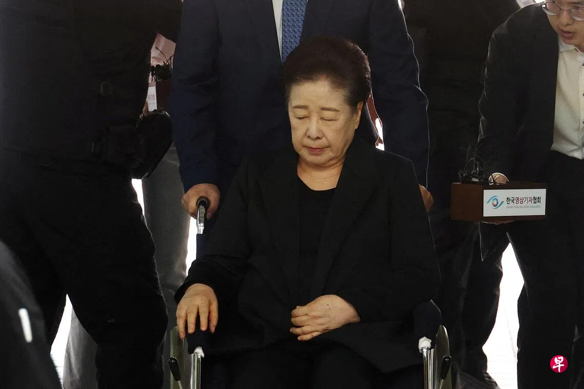 韩鹤子2012年9月获任统一教总裁,这是她在任期间首次以犯罪嫌疑人身份被传讯并批捕。她星期一(22日)坐着轮椅到首尔中央地方法院出庭,接受逮捕必要性审查。