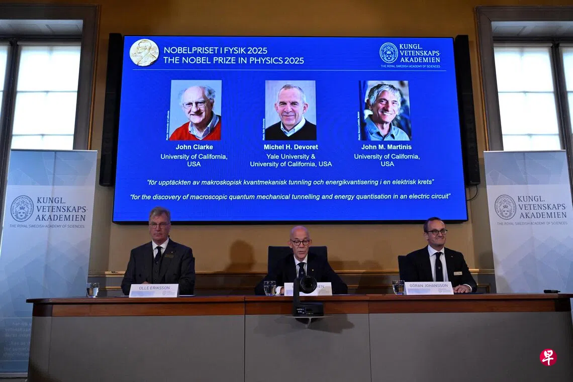 瑞典皇家科学院宣布,约翰·克拉克(John Clarke)、米歇尔·德沃雷(Michel Devoret)与约翰·马蒂尼斯(John Martinis)共同获得2025年诺贝尔物理学奖。