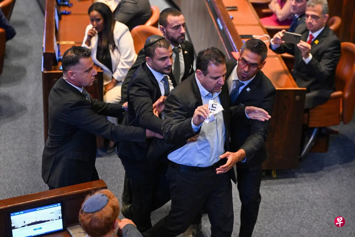 以色列两名左翼议员在美国总统特朗普发表演讲时,作出示威举动,被驱逐离场。