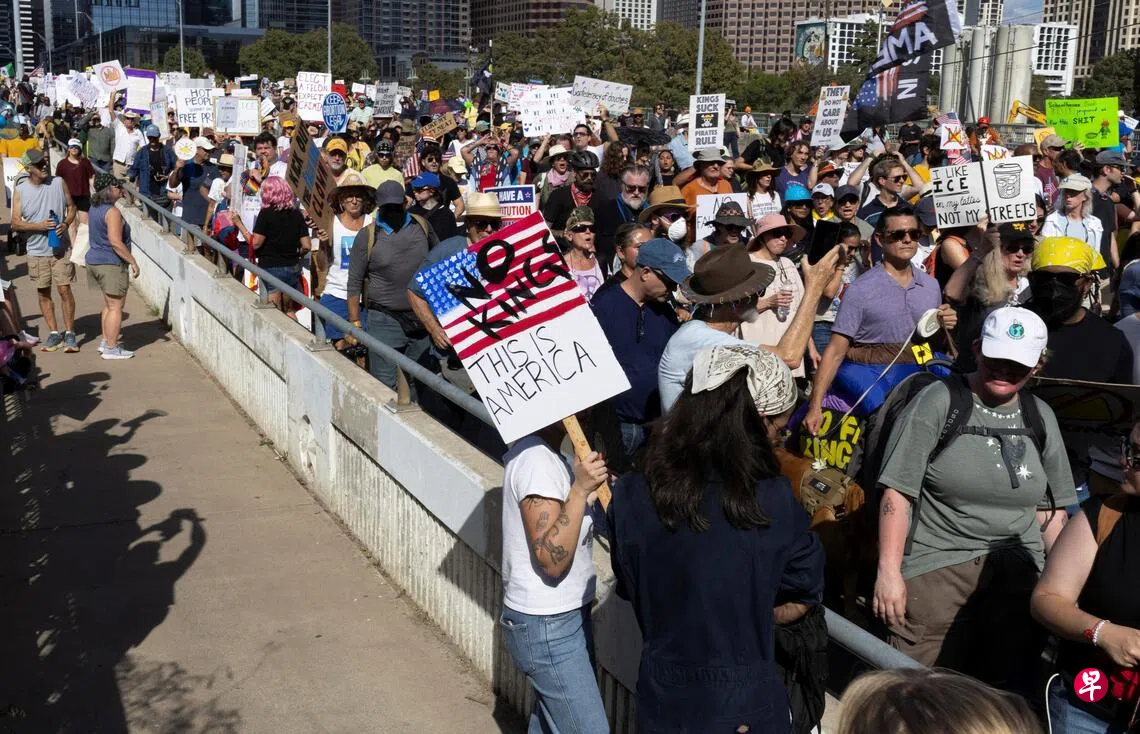 美国50个州星期六(10月18日)举行超过2600场主题为“无王”的反特朗普示威,旨在反对特朗普政府在移民、教育和安全方面推行的政策。