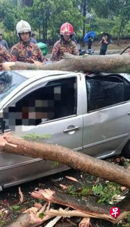 云顶半山峇冬加里星期一(20日)也发生树倒意外。倒下的大树压中一辆行驶中的车子,当场压死一名20岁的马来族司机。