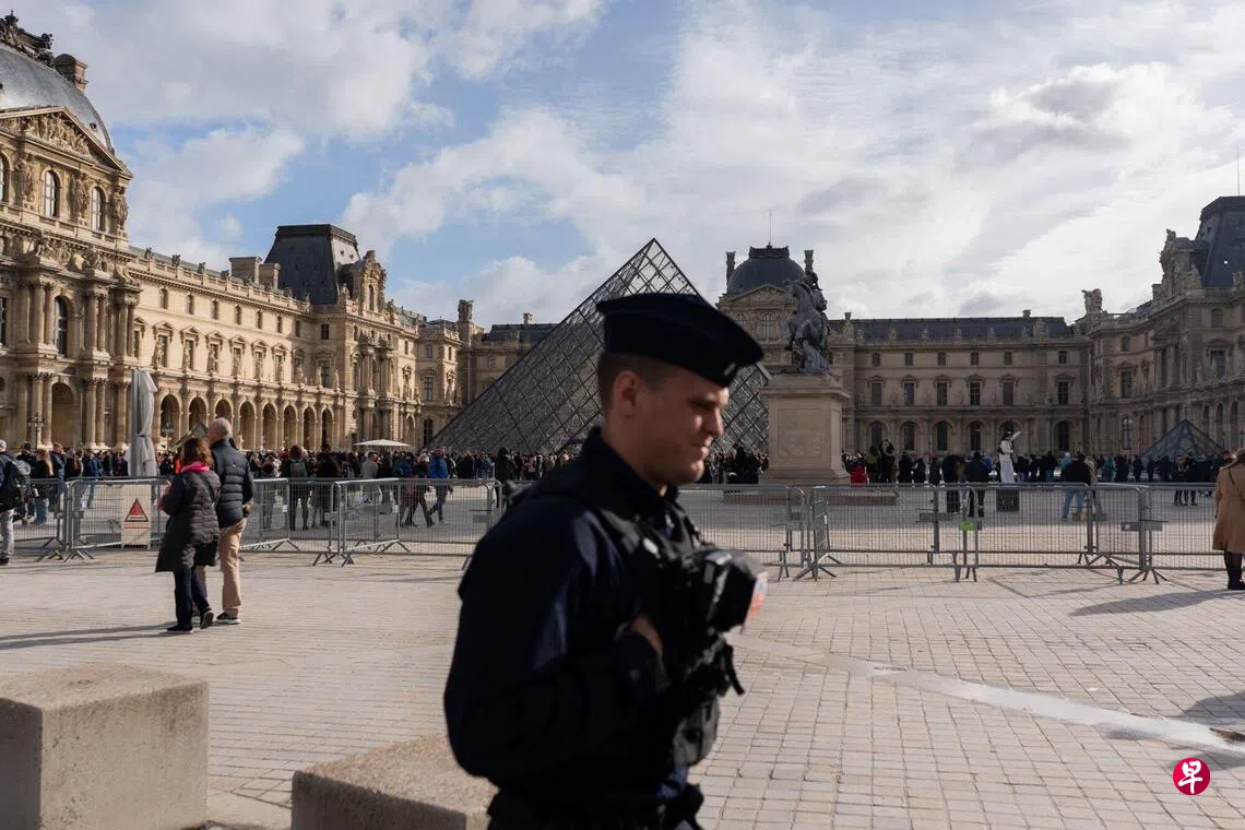 上月19日,卢浮宫开馆后不久,四名蒙面人操作升降装置潜入馆内,在数分钟内抢走九件价值8800万欧元(约1亿3000万新元)的珠宝,警方过后找回一顶属于拿破仑三世妻子欧仁妮皇后的皇冠。