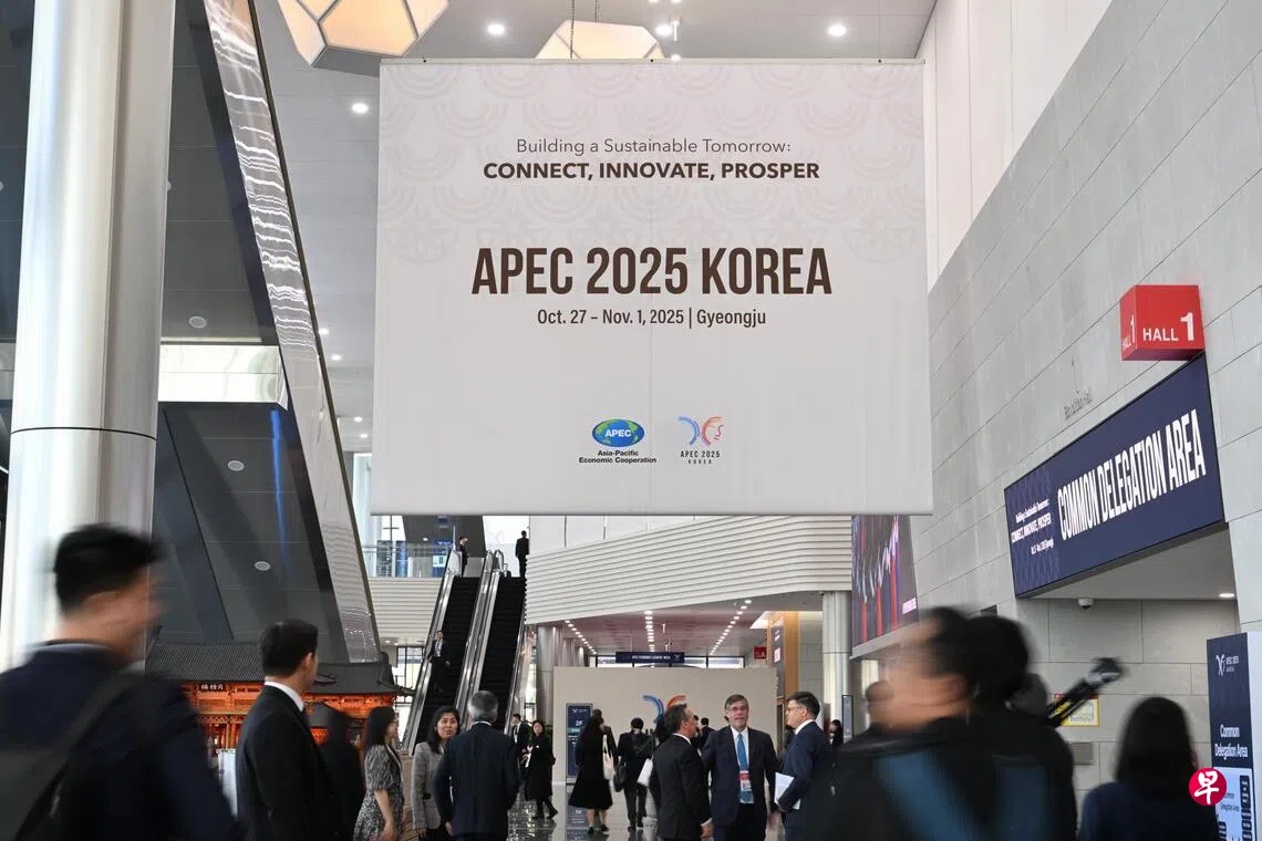 韩国总统李在明11月1日主持APEC峰会第二阶段会议,并将把APEC主席职务移交给下任主席国中国。 (海峡时报)