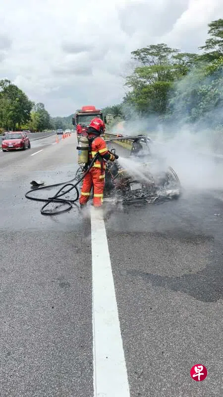 这起火烧车事故发生在星期五(11月7日)下午1时49分,地点在雪兰莪州吉隆坡—瓜雪连贯大道(LATAR)第23.7公里处,即万挠往瓜拉雪兰莪方向的路段发生。