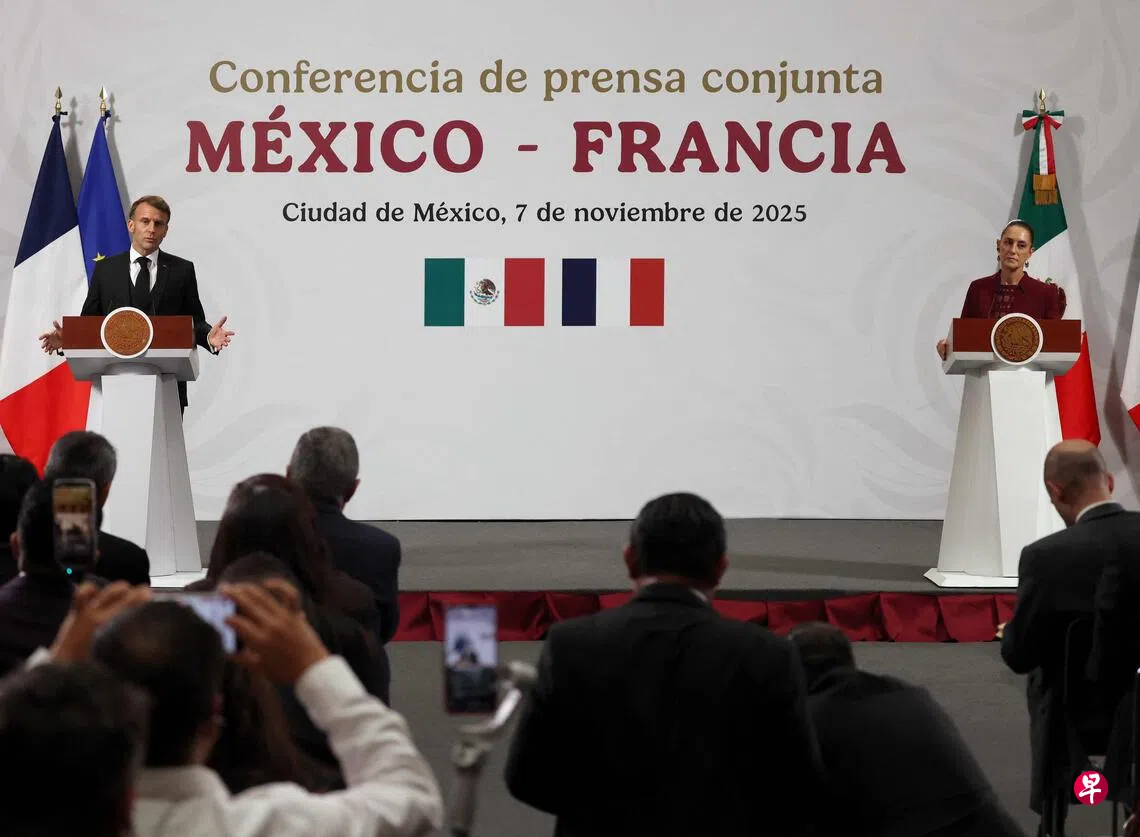 新华社报道,墨西哥总统辛鲍姆与马克龙在首都墨西哥城国家宫共同举行新闻发布会,一名记者就美国总统特朗普称所谓“贩毒船”上人员为“恐怖分子”以及美方近期相关军事行动向马克龙提问。