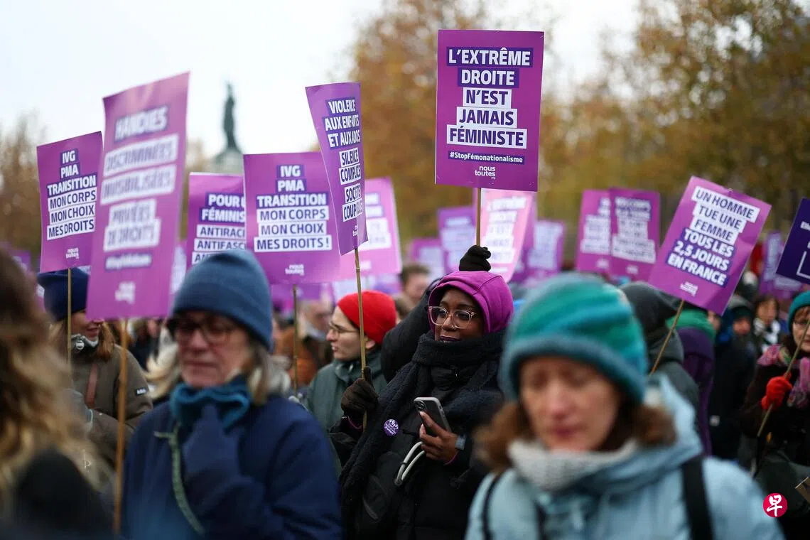 法国各地数千人上街游行,抗议持续存在的针对妇女暴力,并要求政府采取更多公共行动,投入更多资金,打击这一社会毒瘤。