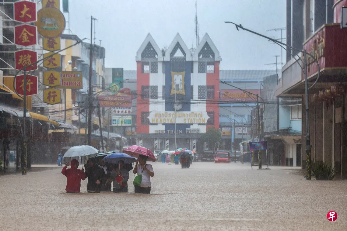 泰国暴雨引发洪灾,当地共有10府受灾,其中宋卡府合艾市灾情严重,上千名旅客滞留在机场和酒店。