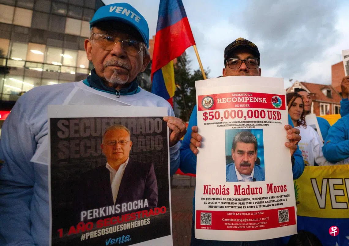 美国指马杜罗为贩毒团伙太阳集团(Cartel de los Soles)的首领,并于11月24日将它列为恐怖组织。此外,美国还悬赏5000万美元(6480万新元),征集能够抓获马杜罗的信息。