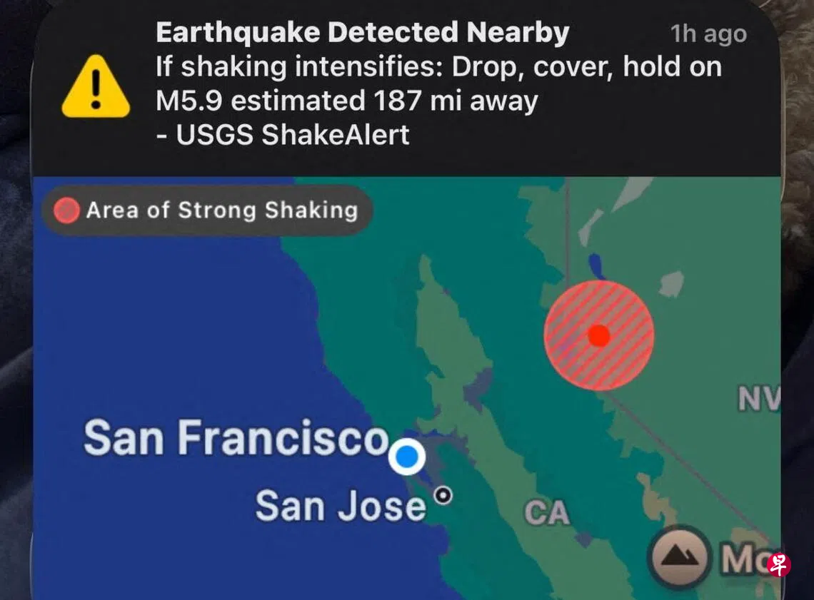 当天早些时候,美国地质调查局(USGS)地震预警系统发布警报称,格林尼治时间4日下午4时零6分(新加坡时间5日零时零6分),美国内华达州代顿镇以东6公里处发生5.9级地震,并发布震中经纬度和震源深度等初步数据。
