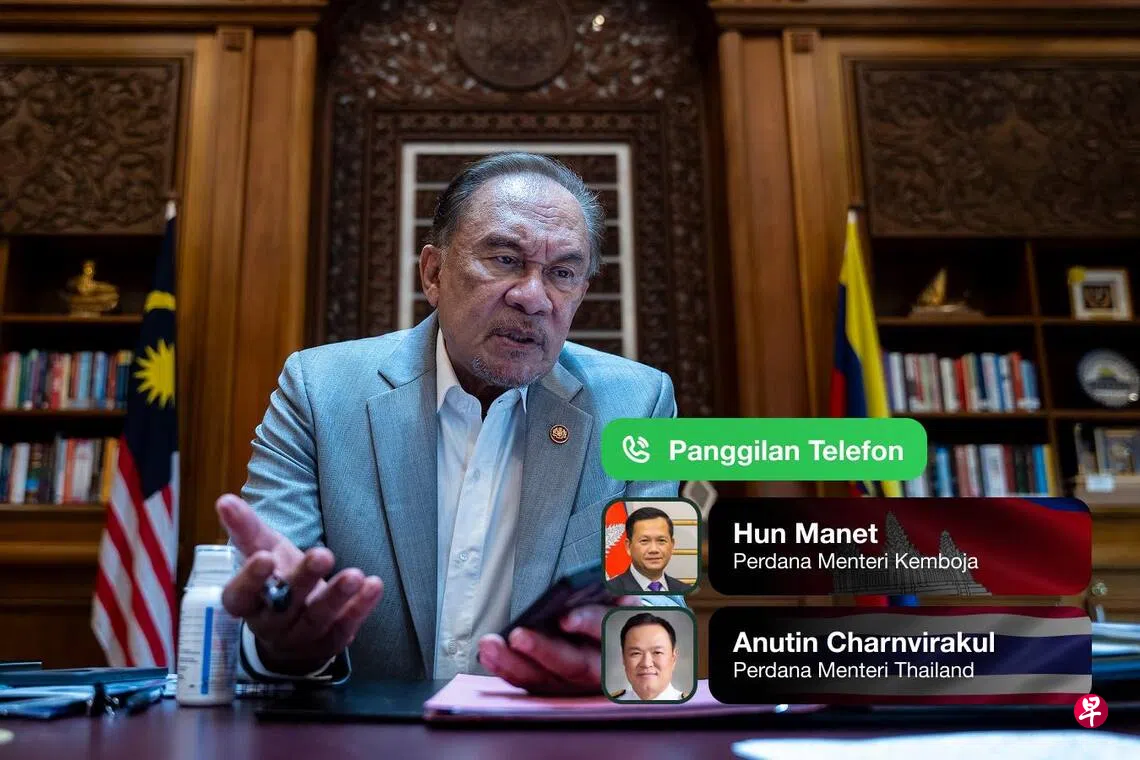 马来西亚首相安华星期二(12月9日)分别致电柬埔寨首相洪马内及泰国首相阿努廷,与他们讨论如何缓解泰柬边境的紧张局势。