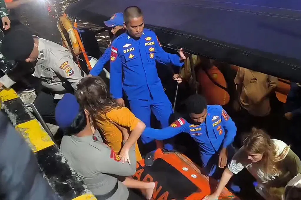 印度尼西亚搜救队星期一(12月29日)在纳闽巴霍(Labuan Bajo)海域,捞起一名游船翻覆事故遇难女子的遗体。