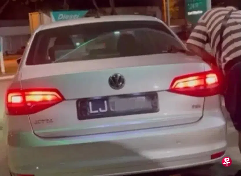 一辆新加坡注册汽车被指遮盖车牌,在马来西亚柔佛州古来添购RON95汽油。马国警方正追查车主身份,有网民搜索发现车子出现在新加坡义顺组屋区。