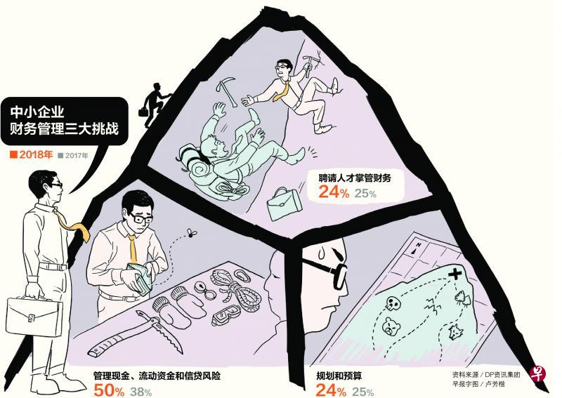 受访的中小企业有接近半数(44%)在财务管理方面面对挑战,其中管理现金流量、流动资金和信贷风险的挑战(50%),同去年相比增加了12个百分点。另外两方面的挑战包括聘请人才掌管财务以及规划和预算方面的挑战,两者各占24%,去年则各占25%。