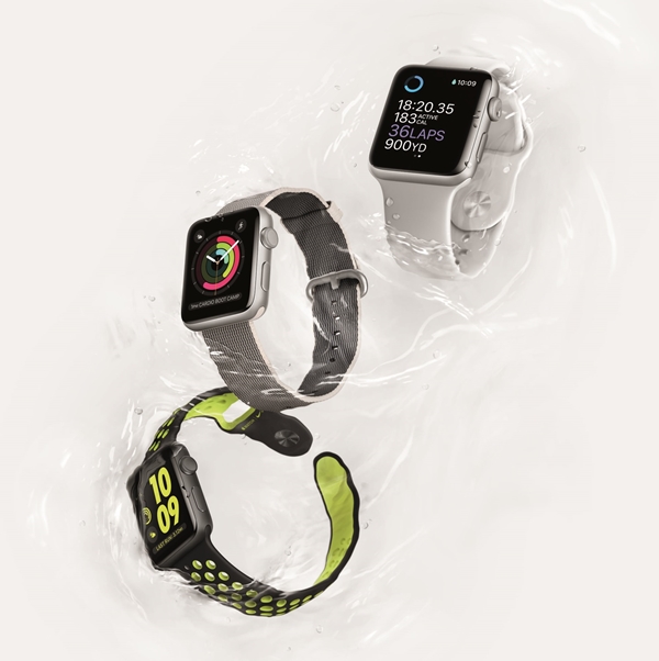 苹果同时发布新品智能手表Apple Watch Series 2,新加入GPS环球定位系统,拥有50公尺防水功能,能够让用户带入泳池健身。