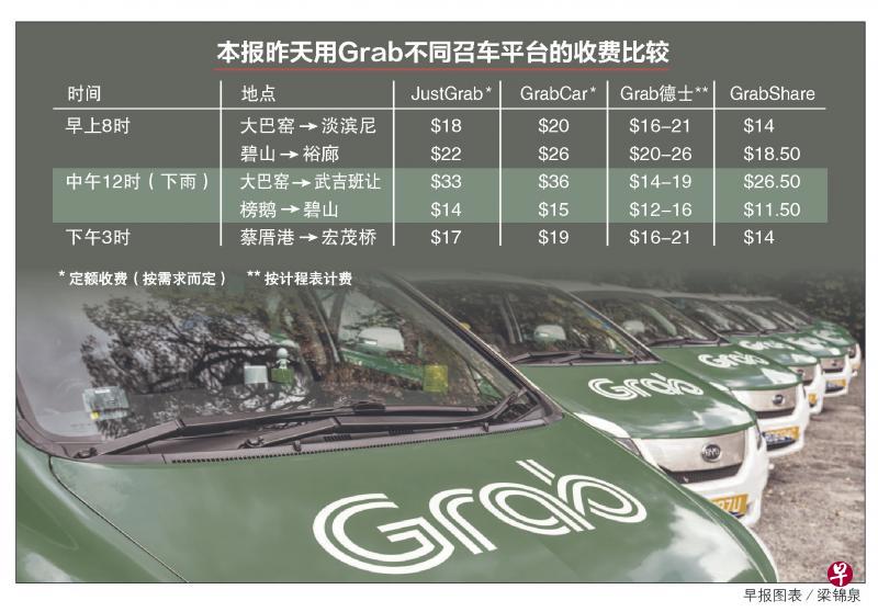 记者昨天尝试在不同时段召车后发现,早上繁忙时段JustGrab确实比GrabCar便宜,但不一定低于德士收费,视地点和时间而定。