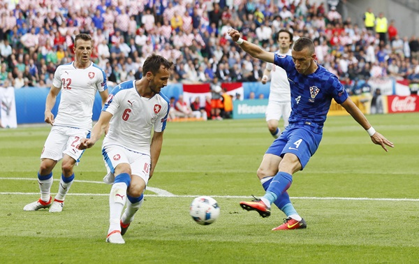 比赛前当奏起克罗地亚的国歌时,刚刚参加完父亲丧礼的队长斯尔纳(Srna)泪流满面,令人动容。球赛开始后,克罗地亚便向捷克施压,曼季茹基奇(Mandzukic)的头球攻门迫使捷克门将切赫(Cech)将球托出门楣。接下来克罗地亚稳稳地控制住中场,捷克虽然尝试反击,但还是无法扭转劣势。