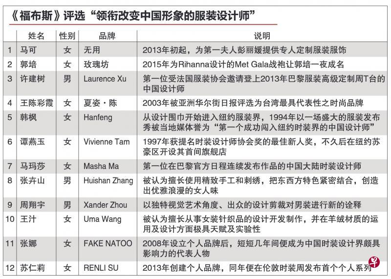 《福布斯》评选“领衔改变中国形象的服装设计师”