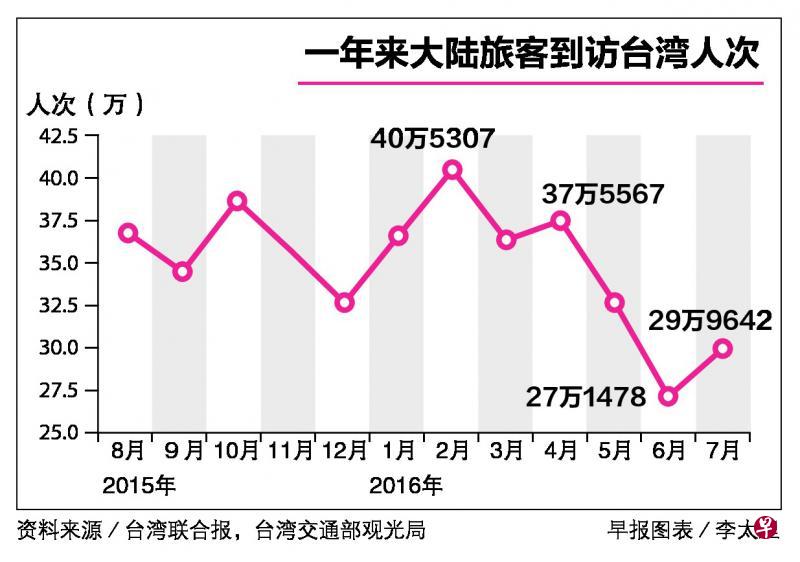据游览车商业同业公会数字,今年5月前陆客团减少三成,6月陆客团不到以往七成,原本每天陆客团有3000至4000辆车在营运,现在每天接不到1000辆,每天营收减少约2000万元新台币(86.18万新元)。
