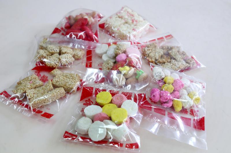 农历新年近,走访传统饼家,发现过年糕饼,除了一般人所熟悉的黄梨挞、鸡蛋卷、虾米卷、花生酥……还有寸枣、天公豆、吉红糕、米佬、麻佬等。