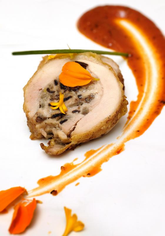 牡丹酱算是少见的酱料,一般用来搭羊肉或牛肉,鲜少跟鸡肉组合。色泽上,该酱料的金红色配合鸡卷,呈现了新年的喜气。