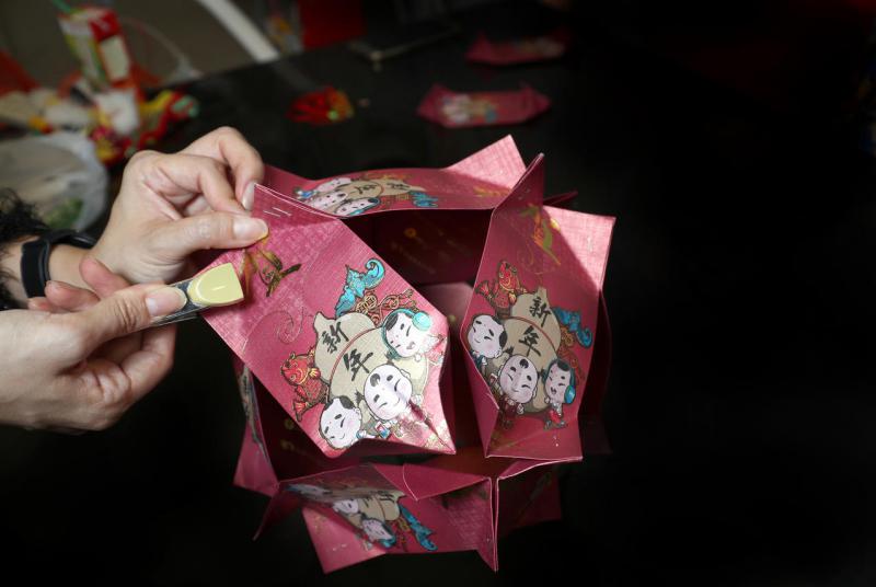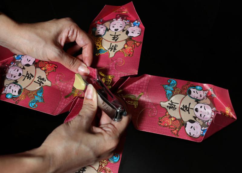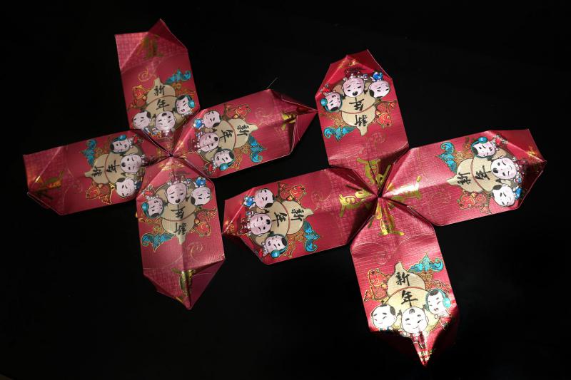新年灯笼的材料很简单,用红包封即可,步骤折折黏黏不复杂,年幼孩童也能胜任。黄明君说:“和孩子讲解步骤,先示范给他看,孩子能照做的话,反映他的理解能力。这种美劳也能训练小孩的眼手协调、动作技能(motor skills)、记忆力等等,寓教于乐。”