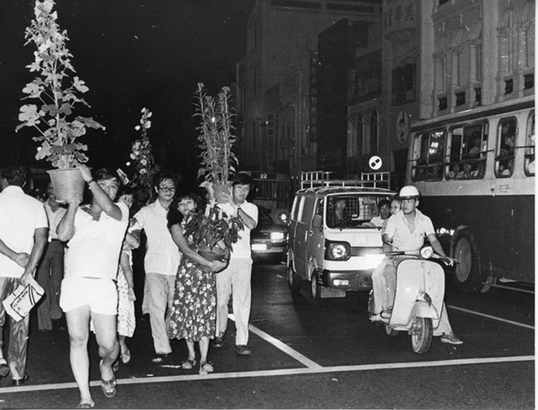 到了70年代,花市开始活跃蓬勃起来。牛车水年花市场出现银柳、吊钟和少量桃花,花的种类也多了起来,花商从台湾进口菊花、百合、玫瑰等。