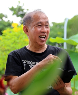 书画家许梦丰对花草树木用情之深无人能及,他一星期要花几个早上到坤成路香莲寺照顾20几盆荷花和其他花草。