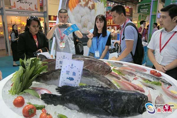 记者在现场看见,各类境内外知名展品纷纷展出,包括南非的钻石、意大利亚的红酒、马来西亚的天然燕窝、澳大利亚的深海鱼油、新西兰的乳制品、泰国的榴莲、巴基斯坦的大理石、柬埔寨的红蓝宝石等。国内的丝绸、陶瓷、茶叶等传统特色产品,以及工程机械、高铁等现代高精尖产品也亮相本届海丝博览会。