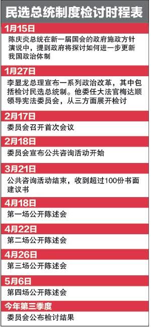 委员会将从三方面检讨民选总统制度,检讨范围包括: